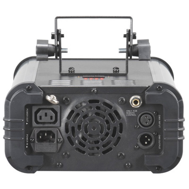 This popular effect now offers professional features such as: full DMX control of the glass wheel, color wheel and dimming, 4-Button DMX Display, and the ability also operate in 3 different modes (DMX, Sound Active and Master/Slave) or from the easy-to-use UC3 controller. The unit comes equipped with two interchangeable lenses (34 and 52-degree) depending on how wide of a beam is required for your event. Users can daisychain up to 5 units together not only through the XLR DMX links, but through the IEC In/Out power links as well.