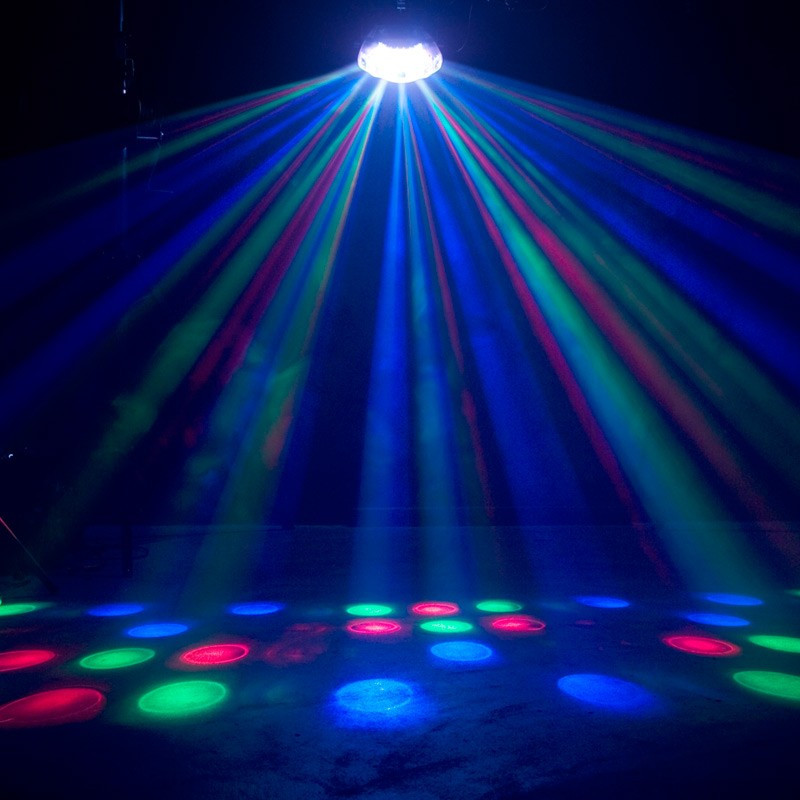 The ADJ Jellyfish IR is a unique Moonflower effect with a clear plastic case that offers two effects in one. It produces bright colorful beams and a glowing case. This fixture is compatible with the ADJ UC IR wireless remote and the Airstream IR App (sold separately). There are plenty of built-in high energy programs on the Jellyfish to create pure lighting excitement for any event.