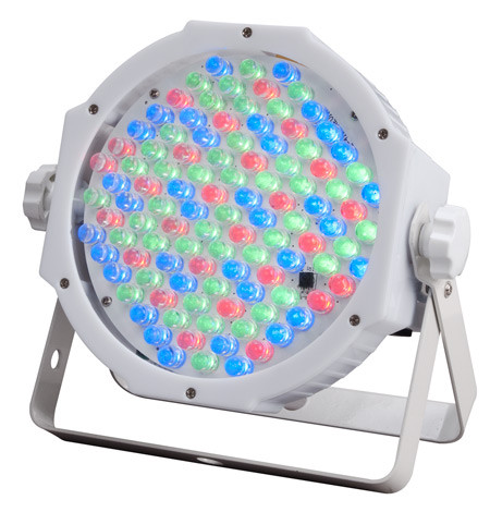 Ultra bright RGB glowing transparent low profile par 56 wash fixture. (108) high powered 10mm LEDs. Power & Dmx in/outs, both sit sideways so unit can be set flat on ground. Optional wireless remote control available (ADJ LED RC)