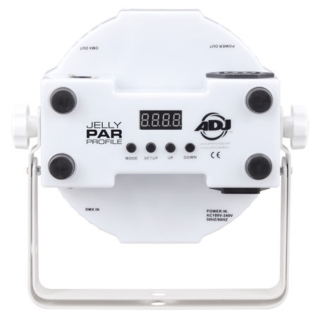 The American DJ Jelly Par Profile is part of the popular "Jelly Series," featuring a glowing transparent housing. The Jelly Par Profile is a compact, low profile Wash Fixture designed to bring color and excitement to any party-great for uplighting, stage lighting or color washing a room. This fixture features a unique "sit-flat" design so that it may sit directly on the ground or inside truss without the scissor yoke because the power & DMX ins and outs are mounted on the side of the fixture, not on the rear.