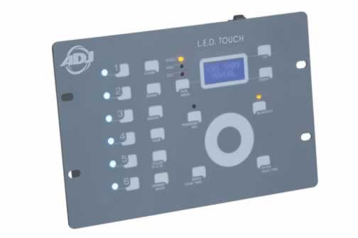 The American DJ LEDTOUCH controls up to six individual RGB, RGBW, RGBD or RGBD/S LED fixtures The LED TOUCH also has 18 programmable chases, with up to 30 steps each and adjustable hold/fade times.