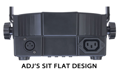 • Power & DMX Ins/Outs sit sideways so the unit can be set flat on the ground or set inside truss