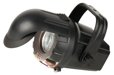Compact LED moonflower effect, 3 watt LED, dichroic dish creates an array of multi colored confetti type beam effects. Sound active, plastic housing