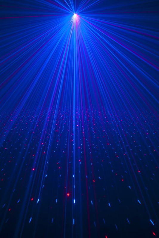 SPECIFICATIONS: • Unique mini laser that projects more than 200 blue and red beams that can be projected on a dance floor, ceiling or wall