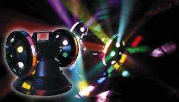 American DJ's Mine is something you have to see... two spinning discs rotate 360 degrees with 24 round and 30 rectangular multi-colored lenses that fill the room with a wild array of light. Use as a centerpiece or stand alone effect.