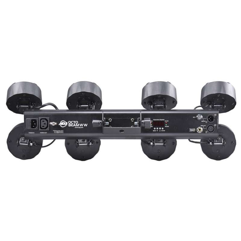 • IEC AC IN/OUT on rear to daisy chain power (up to 12 Octo Beam WW's @ 120V and 19 Octo Beam WW's @ 230V )