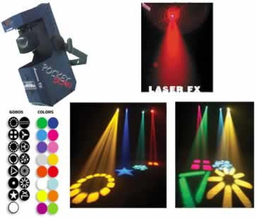 The Pocket Scan is an amazing new concept in lighting technology because of it's simultaneous use of a laser and a halogen lamp. Sound activated, 15 colors, 14 gobos, 170 degree pan, 110 degree tilt. DMX-512 protocol.