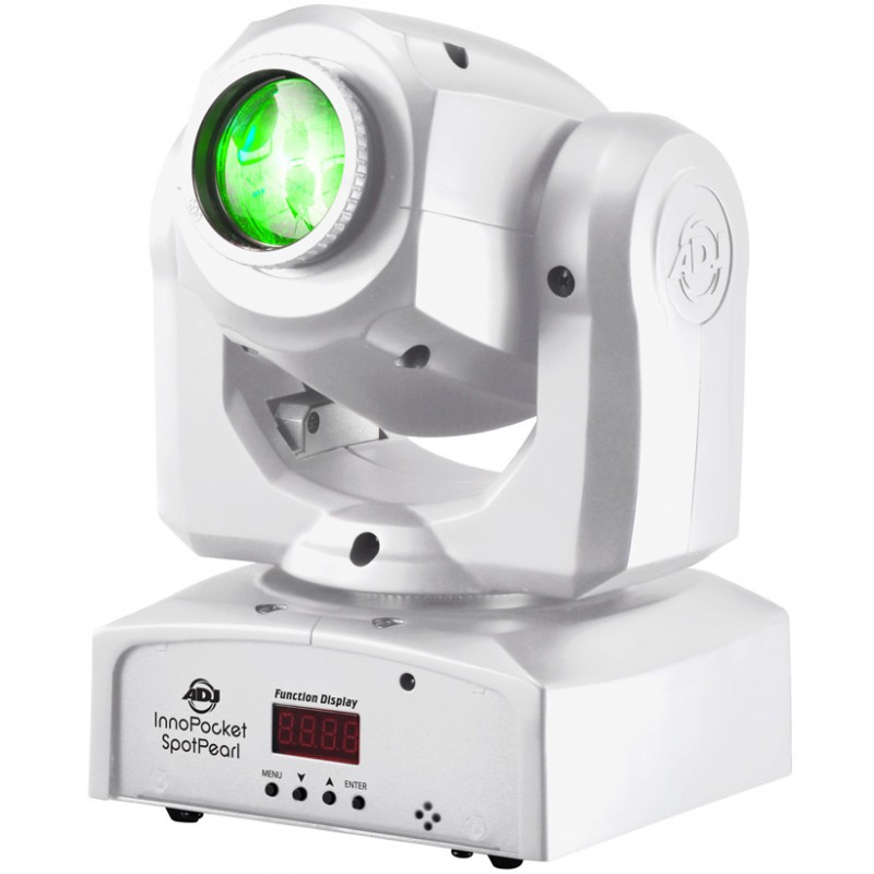 Both Inno Pocket Spot Pearl's feature 7 colors plus white, 7 fixed GOBOs plus spot and separate color wheels. The Pocket Spot Pearl Pak provides pure lighting excitement with its fast moving beams and color changes. It has a pan and tilt inversion mode that makes one head do the opposite of another when linked together.