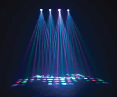 Specifications: * LED DMX-512 Moonflower with 256 razor sharp Red, Green, Blue & White Beams* 256 total 5mm LEDs : 64 Red, 64 Green, 64 blue and 64 White* 2 DMX Channel Modes (4 Channel mode or 256 Channel mode)* 4-Button LED DMX Display* Linkable via XLR connections* Wide beam spread covers a large area* 3 operation modes: DMX, Sound Active & Master/Slave* Sound active from built-in programs* Strobe function* Beam angle: 60 degrees* Runs extremely cool! - NO Duty Cycles! - Run all night!* Includes hanging bracket* Power Consumption: 29W maximum* Extreme long lifetime of the LEDs (100,000 hr. rating)* 1/4" input for optional American DJ UC3 remote control (sold separately)* In/Out IEC power connections to daisy-chain power* Multi-voltage Operation: AC 100-240V, 50/60Hz* Dimensions (LxWxH): 38.5" x 8.5" x 4.75" / 975x213x121mm* Weight: 15 lbs. / 6.4 kg.