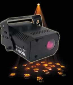 Moonflower effect with 18 gobo/color combinations that rotate back and forth and change gobos/colors.
