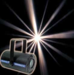 Multiple beams of white light slowly rotate for an economical moon-flower effect! Works great with fog and in multiple units. Ideal for mobile and permanent applications.
