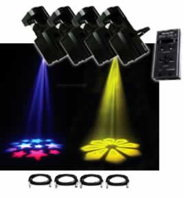 System includes: 4 x Ultra Scan 250s, 1 x DMX Solo, 4 XLR to XLR cables.