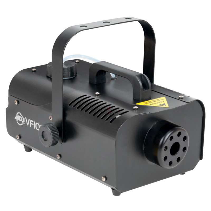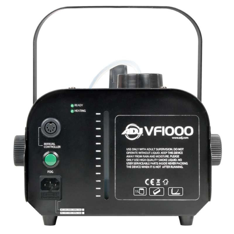 The ADJ VF1000 is a 1000W mobile Fog Machine that is great for mobile entertainers, and medium size nightclub and bars that want to add atmosphere to their events, plus it allows people to see the beams from the lighting fixtures. The VF1000 is equipped with a high efficiency heater that quickly burns through the fog liquid. It comes with a 1 liter internal fog fluid tank, has a fog fluid level indicator, comes with a wired remote control, and uses water-based fog fluid. Advanced features include: Electronic Thermo Sensing (ETS) for optimum heating levels, and a low fog fluid shut off sensor to protect the pump. The VF1000 includes two remotes: one wired and one wireless remote.
