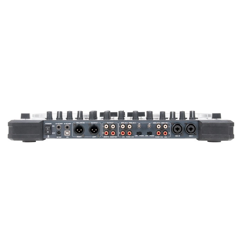 Pro Features include: The Inno-fader compatibility (the VMS Series was the first controls to offer this) with curve control and assign and reverse, XLR master output with Balance & Booth output. DSP D-Core inside with studio quality audio engineerinp + pro stage microphone circuitry. It has 34 assignable rotary controllers, 4 assignable rotary encoders, 50 MIDI buttons with LED illuminations, including 18 with dual blue/red LEDs.