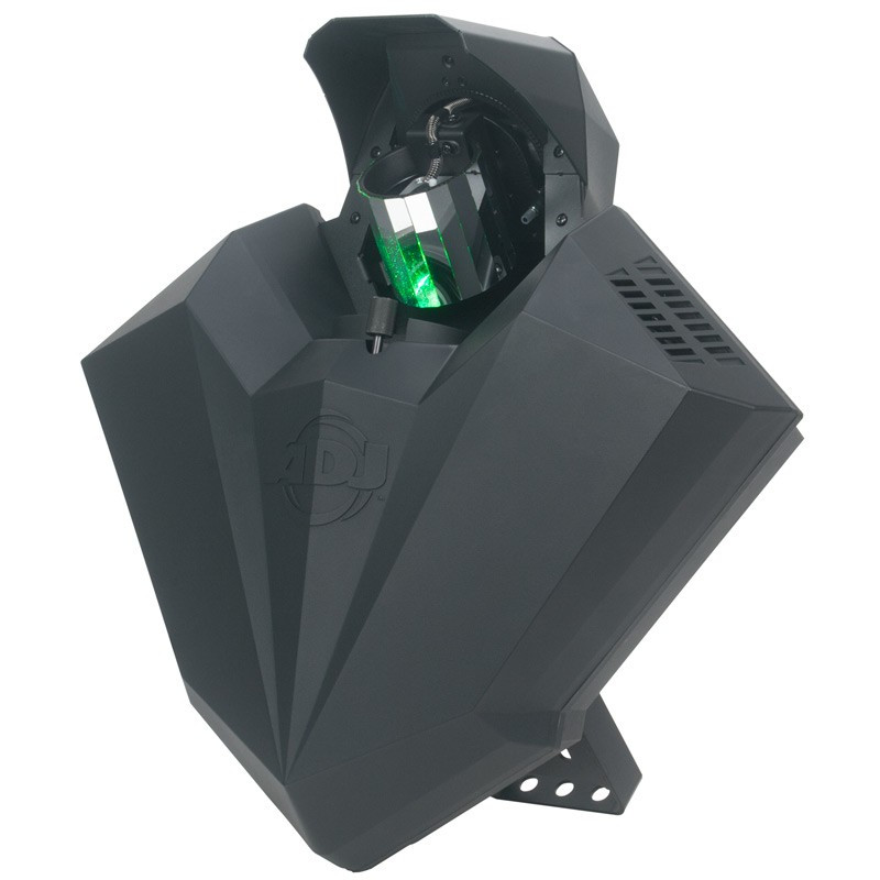 The ADJ Warlock is a unique, compact moonflower effect featuring a barrel mirrored scanner and a Philips Platinum MSD 2R discharge lamp. It features 12 Gobos + spot, 12 Colors + White, 8 DMX Channels, 6 built-in programs, 180 pan / 360 tilt continuous barrel rotation, and a 28 degree beam angle.