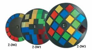 For use in the Color Pod, RotoPod, Active Pod and Lunar Pod effect lights. The Z-DW 1 projects projects four separate colored quadrants in a large moonflower pattern, Z-DW 2 projects a tunnel effect with segregated colors, and Z-DW 3 projects random multi-colored beams of light.