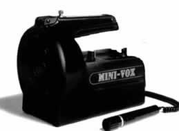 Mini-Vox runs for 25-35 hours on a set of size C alkaline batteries; if your Mini-Vox will get daily use, check out the optional rechargeable battery kit. Mini-Vox comes in black, yellow, blue or red, with mic and shoulder strap included. Set the sound unit down and roam freely up to 200 feet away.