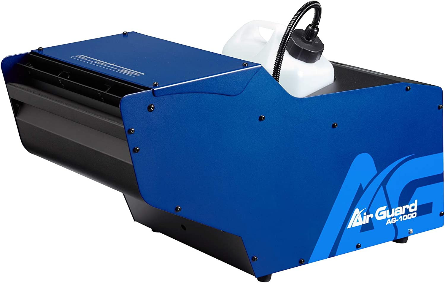 The Antari AG-1000 is a 1000 watt continuous duty air sanitizer. It is designed for medium sized public areas and open spaces with high foot traffic. It includes a timer and vlume settings which allow it to spread disinfecting fog at a regular pace. For us with the Air Guard FLD or FLE liquid.