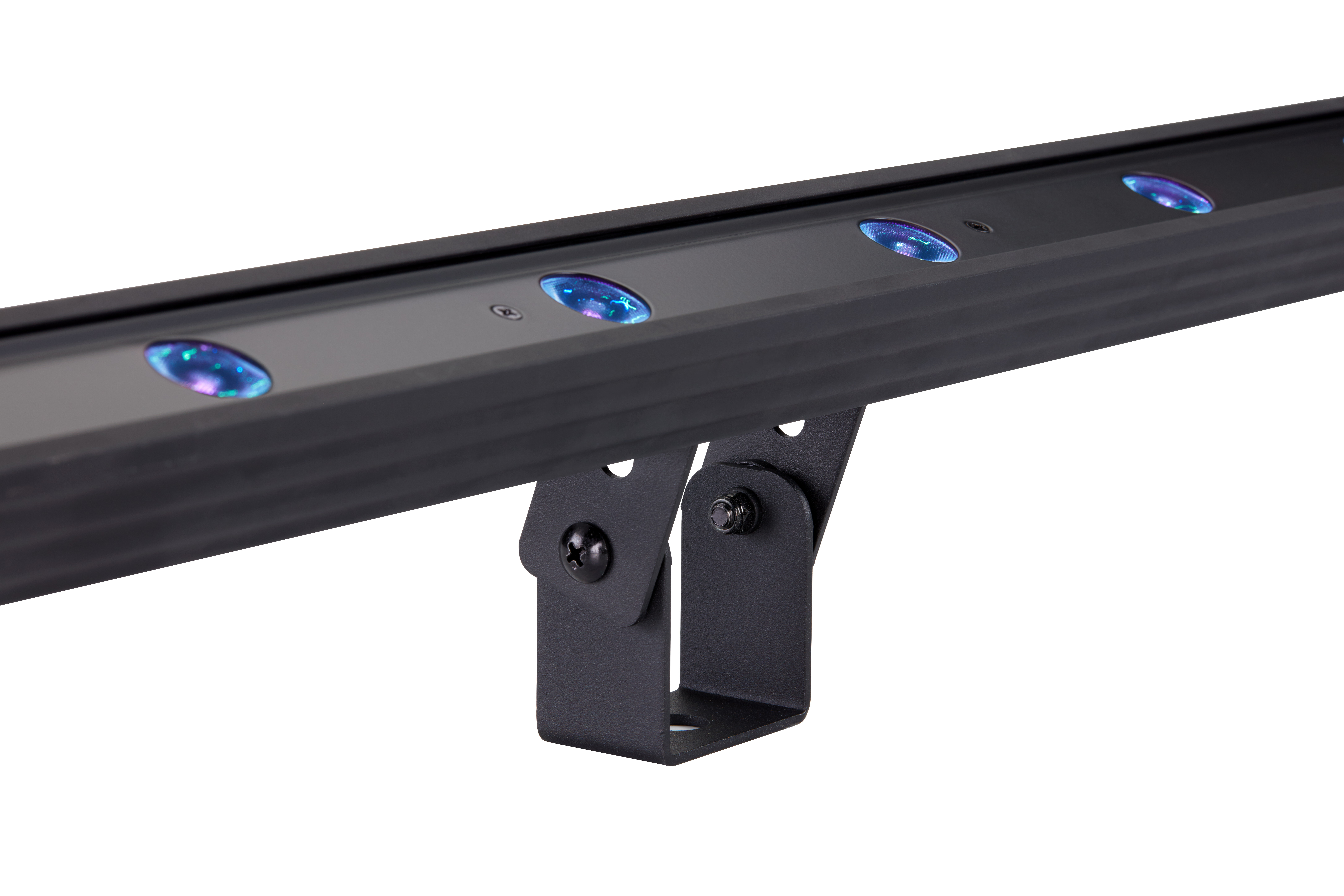 It features (12) 1.9W high power UV LEDs, a 40-degree beam angle, special optics to prevent wear degradation from high UV exposure, flicker free operation for TV and FILM, an IP20 rated (indoor use only) aluminum extruded housing, an adjustable mounting bracket, and comes with a 22AWG power/data bare wire end pigtail cable attached on the back which connects to the Antari DarkFX Drive 4 fixture driver (sold separately) which is required for power and DMX control.