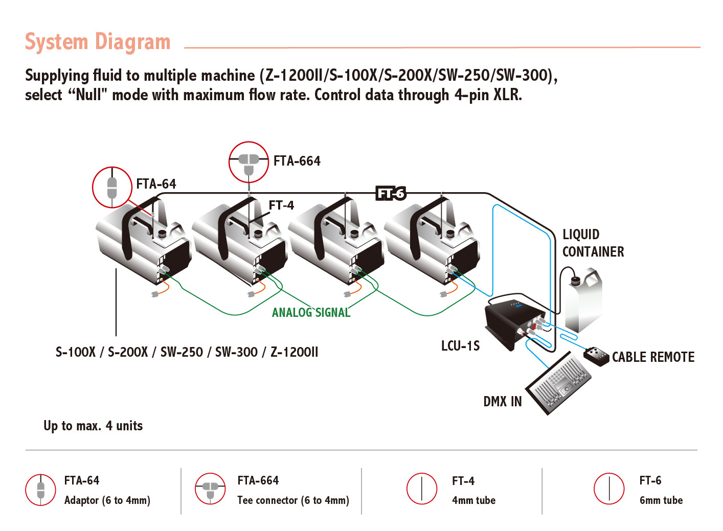 The latest LCU-1S comes with a LCD panel allows user to read and make setting with ease. It is preprogrammed for use with Z-1200II, S-100X, S-200X and SW-250. Flow rate are adjusted to supply one unit at the time. An optional "Null" mode offers versatility for use with any model, running the pump at 100% output; enable it to supply up to maximum 4 units at a time. LCU-1S can supply fluid to 35 meters long or 25 meters high at maximum, designed to meet most remote fluid supply application.