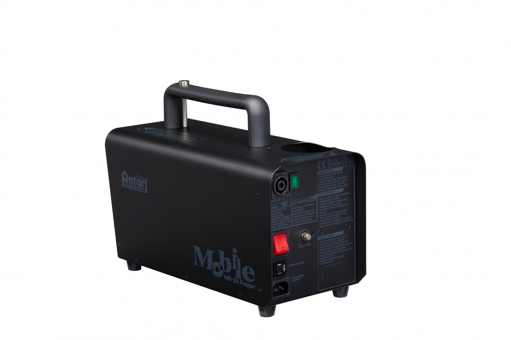 MB-55 is a 1450W fog generator with tremendous output volume. The MB-55 uses Antari's heat preserve technology that allows the machine to fog for a limited time when disconnected from main power allowing the machine virtually anywhere to quickly deliver large volumes of thick long lasting fog. Handle-mounted push button with adjustable output volume make for simple onboard control with an available optional wireless control option. MB series machines are perfect for use in photography, film, theater, industrial testing and so much more.