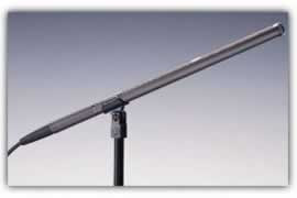 The AT815b is a wide-range condenser microphone with a line + gradient polar pattern specifically designed to provide the narrow acceptance angle desirable for long distance sound pickup. It was created for use in professional recording, broadcasting, film/ TV/video production, high-quality sound reinforcement and other demanding applications requiring excellent sound rejection from the sides and rear. Audio Technica engineers have utilized the newest low-mass condenser technology in the quest for superior performance. The permanent charge is now on the fixed back plate, rather than on the moving element. With the fixed-charge "back plate" construction, a gold-vaporized diaphragm just 4 microns thick (about 0.00016") can be used. This reduces moving mass, improving frequency response and transient response while reducing distortion.