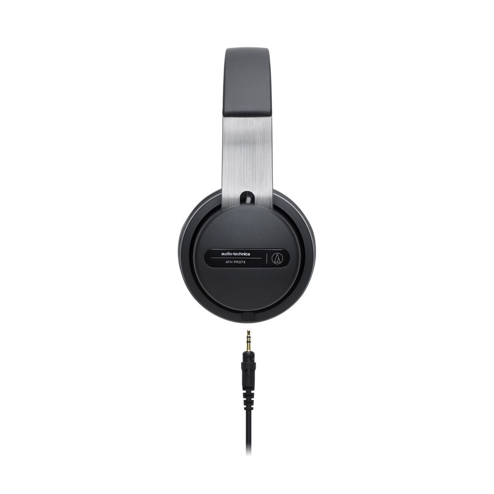 The ATH-PRO7X professional DJ headphones combine the comfort and low-profile style of an on-ear design with powerful 45 mm drivers capable of handling 2,000 mW of input power. This combination gives DJs extremely accurate high-fidelity audio reproduction even at loud volumes from a pair of headphones that are easy to wear through even the longest gigs.