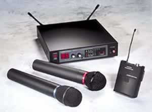 100 PLL-synthesized channels selectable via switches on receiver and transmitter. True Diversity operation selects the better signal from two independent receiver sections, reducing dropouts.