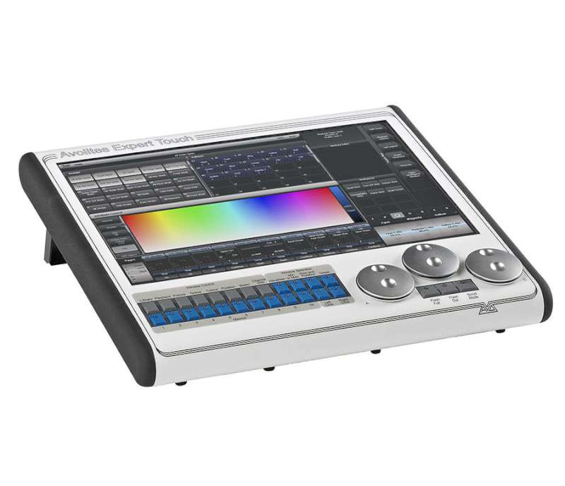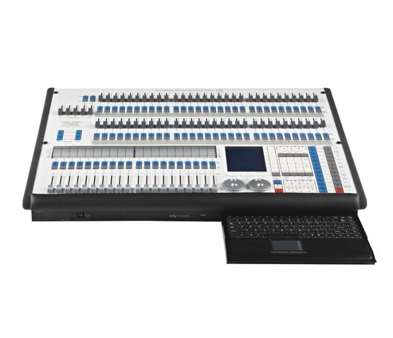 This all-in-one Expert Pro Lighting Console with Expert Touch Wing Package includes (20) Playback Submasters, Unique Split Roller, (4) Physical DMX Outputs (16 with ArtNet) and Shape Generator for instand creation of patterns & effects. No fixture limit. No HTP channel limit. Dimmer with soft patch, with multiple response curves and HTP control, Built in UPS. Virtually unlimited memories or sequences. Multiple cue lists in a single show. Built-in Stage Visualizer, MIDI Timecode Inputs, Personality files for over 4,500 fixtures. Includes Cover and Littlite.