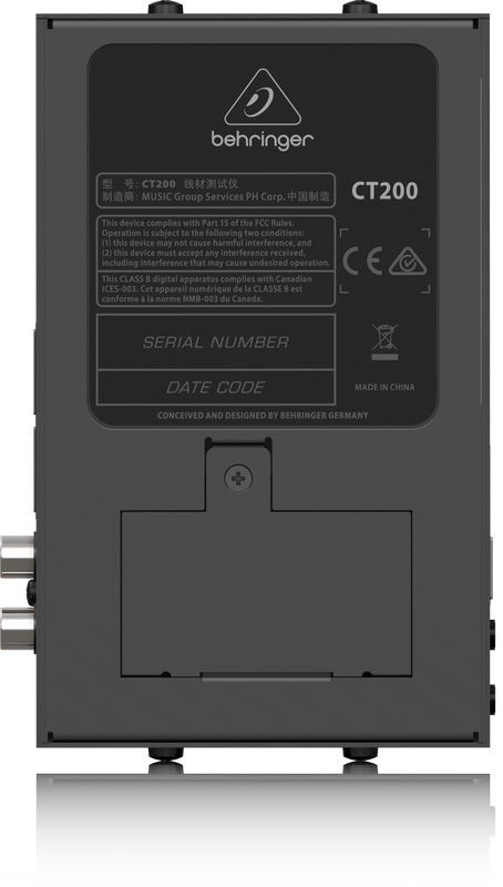 Test With the Best The CT200 accepts every type of cable you might use in a recording or live performance situation: XLR, Speakon*, TRS (", 1/8"), RCA, RJ45, MIDI and USB. Choose from 3 diagnostic modes: Cable Test, installed Cable Tester or Tone. The CT200 can check for continuity, intermittent or shorted connections, the presence of phantom power and grounded shields. Because this handy tool runs on two AA batteries, you can carry it in your pocket and be ready to troubleshoot at a moment's notice.