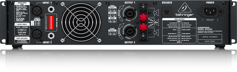 • 2,000 Watts into 4 Ohms (bridge mode)