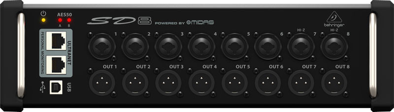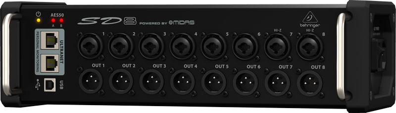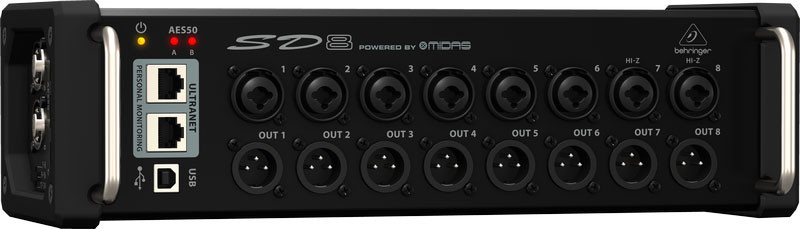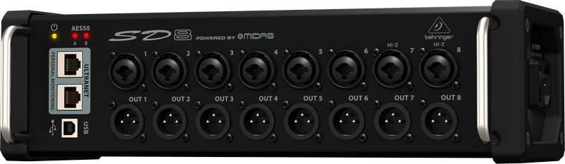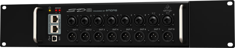 KLARK TEKNIK AES50KLARK TEKNIK SuperMAC (AES50-Compliant) technology gives the SD8 its high-capacity, ultra-low latency digital interconnectivity, as well as superbly simple deployment and ease of use. KLARK TEKNIK engineers worked hand-in-hand with BEHRINGER to ensure the SD8 meets, or exceeds, the requirements of live entertainers and their professional audio engineers. Some of the outstanding features are: