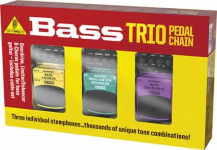 Overdrive, Limiter/Enhancer and Chorus Effects Pedals for Bass Guitar Including Cables, the BCH100 Bass Chorus, BLE100 Bass Limiter Enhancer and BOD400 Bass Overdrive. The BEHRINGER BASS TRIO TPK988 takes the guesswork out of creating a killer effects chain for bass tones.