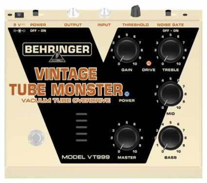 The VINTAGE TUBE MONSTER VT999 effects pedal has that full-tone roar of a tube engine under its hood, letting you take off with anything from warm blues overdrive to heavy distortion.