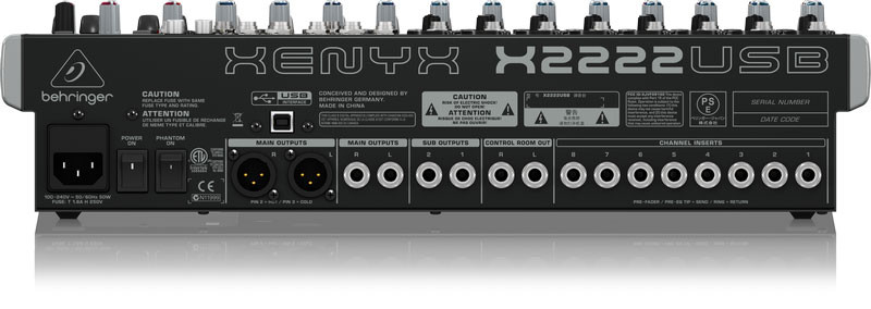 Special Features... The X2222USB comes equipped with channel Inserts for all mono channels for use with outboard FX. All channels feature 3 Aux Sends: 1 pre/post fader switchable for monitoring/FX applications; 1 post fader (for use either with the internal FX or as an external send); Clip LEDs; Mute, Main Mix and Subgroup routing switches, plus Solo and PFL functions. Additionally, you get 3 multi-functional stereo Aux Returns and 2 Subgroups with separate outputs, for even more routing flexibility.