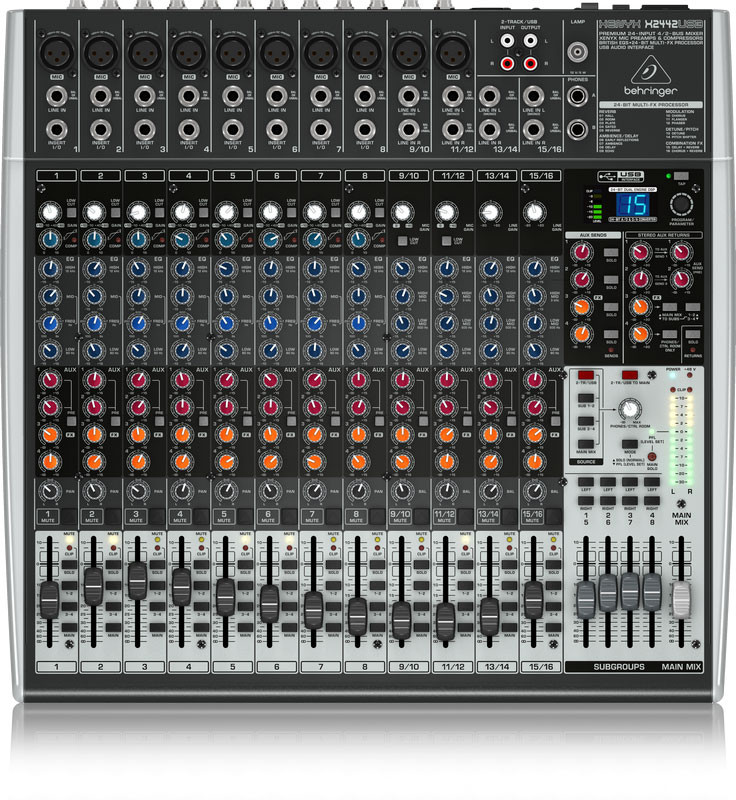 The "Big Daddy" of the USB Series is the X2442USB with its 10 state-of-the-art, XENYX-powered mic inputs, four stereo channels, four Aux Sends and four stereo Aux Returns, and our easy to use "one knob" compressors on each of the mono channels.