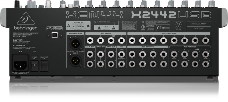 Other features available exclusive to the X2442USB are: four subgroups for mixing flexibility; Main Inserts (the ideal path for connecting graphic equalizers or compressor/limiters); and eight Direct Outs and Sub Outs for analog recording purposes.