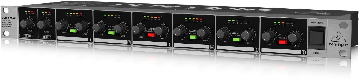 A professional dual-input, stereo zone mixer designed specifically for fixed installations, the rack-mountable ULTRAZONE ZMX2600 can distribute your music programming and announcements to up to six zones (rooms). Typical applications include restaurants, office spaces, health clubs and houses of worship, just to name a few.