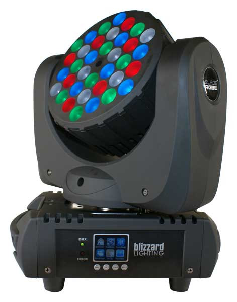 Packed with 36 5-Watt CREE Red/Green/Blue/White LEDs and coupled to an all-new, incredible 1.1 degree beam angle optic system, the Blade' RGBW is an incredible aerial performer packed in a tiny, lightweight package. Plus, thanks to advanced motor technology and innovative design, the Blade' is the fastest, most accurate moving head we've ever offered... by far!