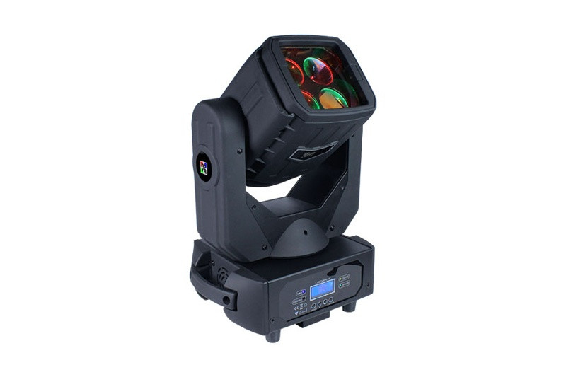 And this fixture comes equipped with an easy-to-use LCD 4-button control panel, dual side handles, industry standard powerCON compatible power In/Out connections, DMX In/Out jacks, and single quarter-turn "Omega" quick connect type clamp bracket, making this one intensively engineered, incredible moving head effect fixture!