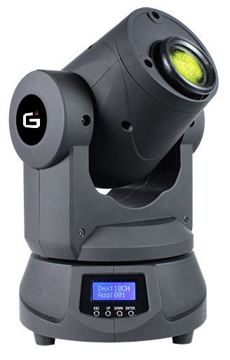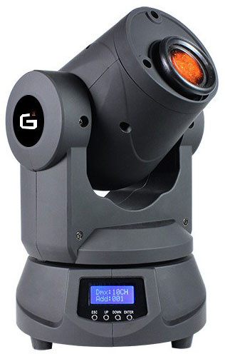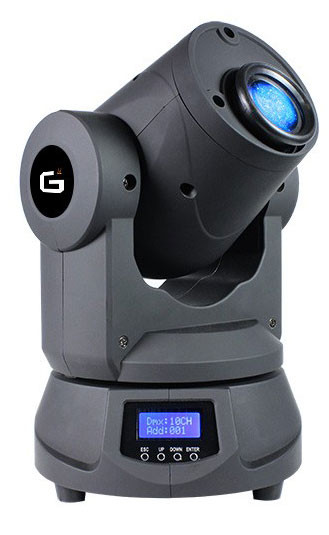 Controlling Lil' G' is a breeze using just 11-channels of DMX, or by using its 4-button LCD control panel, which both offer complete control of every available feature including pan/tilt with fine 16-bit adjustments & speed control, ultra-smooth 16-bit dimming, strobe (1Hz-10Hz), bi-directional color wheel, bi-directional gobo wheel, auto mode, sound active mode, and fixture reset.