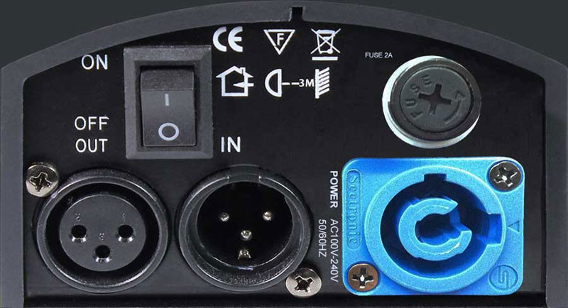 The power input connection found on the back side of Lil G' is industry standard PowerCON compatible, and DMX 3-pin In/Out jacks + a single clamp mounting bracket round out the many professional features you'll find in this intensively engineered, incredible mini moving head effect fixture!