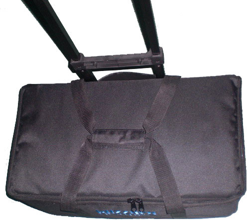 The Puck Pack Rolly' will hold any 4 Puck' fixtures securely between 3 removable velcro padded dividers, and is equipped with a removable suitcase-style wheel/handle assembly. Combined with the Puck Pack Carry', it serves as the bottom half of an awesome 8 Puck' rolling mobile solution! The Puck Pack Rolly' also has a convenient front storage pocket to hold any accessories you like!