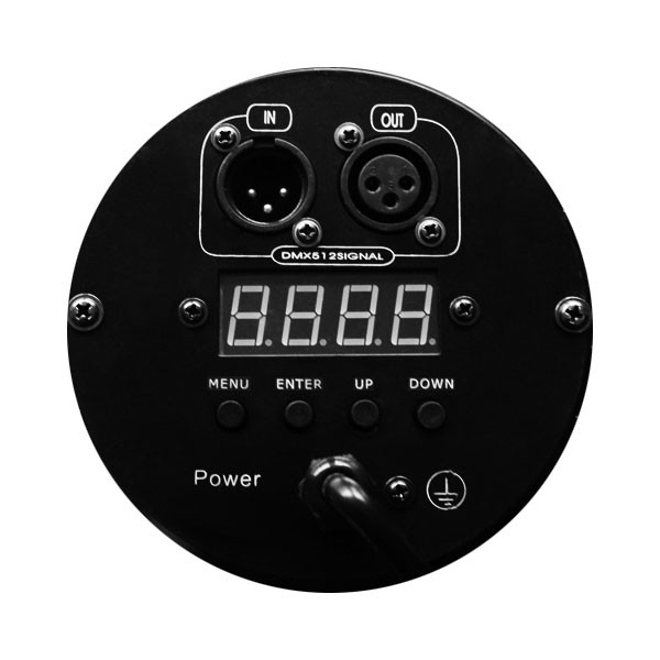 The built-in 4 character/4 button LED control panel allows total control over the fixture, including master/slave, color preset, and standalone settings. The control panel also displays the fixture's current temperature, and temperature protection cut-off settings.