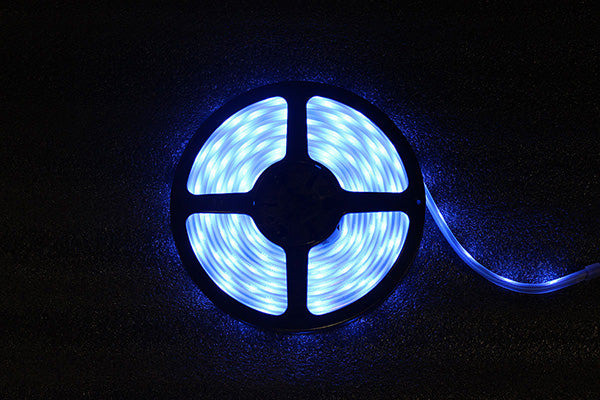 Komply' RGB5050 is an IP65 rated 12V flexible LED ribbon that has 30* RGB LEDs per meter on a 5-meter reel, and is a wonderful architectural LED lighting solution for numerous indoor or outdoor applications. There are cut points every 10cm (between every 3 LEDs), so no matter what length the situation calls for, you're sure to get a great fit!