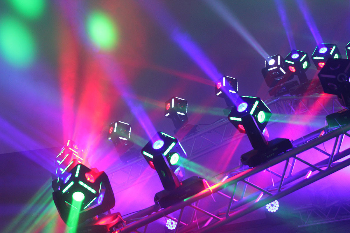 Aerial effects from Snake Eyes' fixtures are a truly amazing sight to see with insanely bright, richly saturated RGBW mixed colored beams coming from any or all directions with user-selectable 630/540 pan, never-ending infinite tilt, and smooth 3-phase motors. It just has a "wow factor" that is off the charts (for a price that's not)!