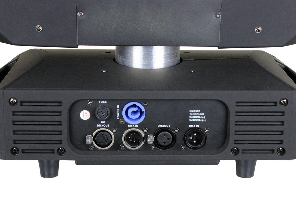 Snake Eyes 2 user-selectable DMX modes (15/37-channels) allow ease and flexibility in programming, as does its easy-to-use 4-button LCD control panel. Power connection is via industry standard powerCON compatible input jack, and DMX 3-pin and 5-pin In/Out jacks + dual quarter-turn "Omega" quick connect type clamp brackets round out the pro feature set.