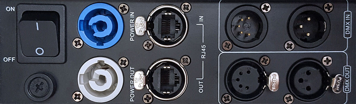 Stiletto Beast fixtures are also well equipped with dual side handles for easy transportation, industry standard powerCON compatible power input and output connections, 3 and 5-pin DMX input and output, RJ45 input and output, and dual quarter-turn "Omega" quick connect type clamp brackets for secure truss mounting.