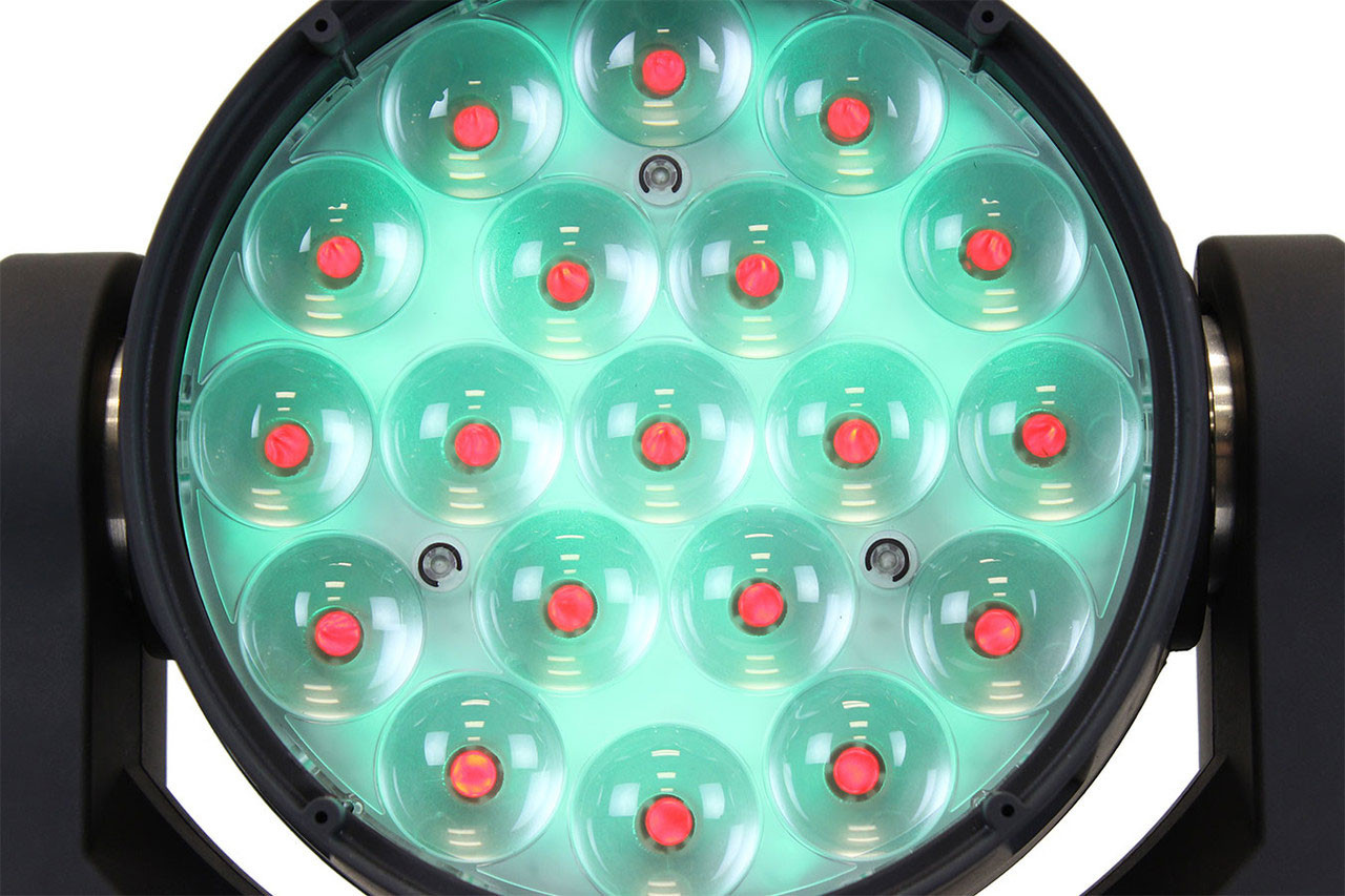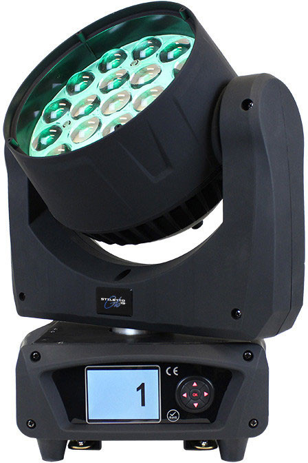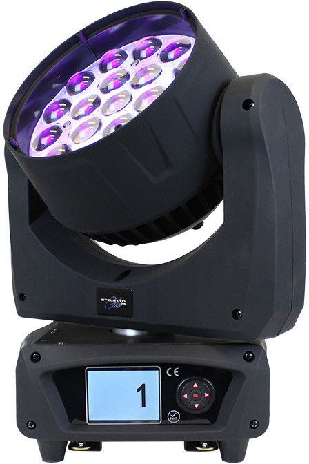 Stiletto' Glo19 is a powerful beam/wash luminaire that is built to impress with its sharp beams and glowing personality! They feature 19x 15-watt OSRAM' RGBW LEDs, a 11-58 zoomable beam angle, and also an additional controllable RGB LED array for backlight "Glo" eye-candy effects which can create a multi-layered dynamic effect that will wow" any crowd.