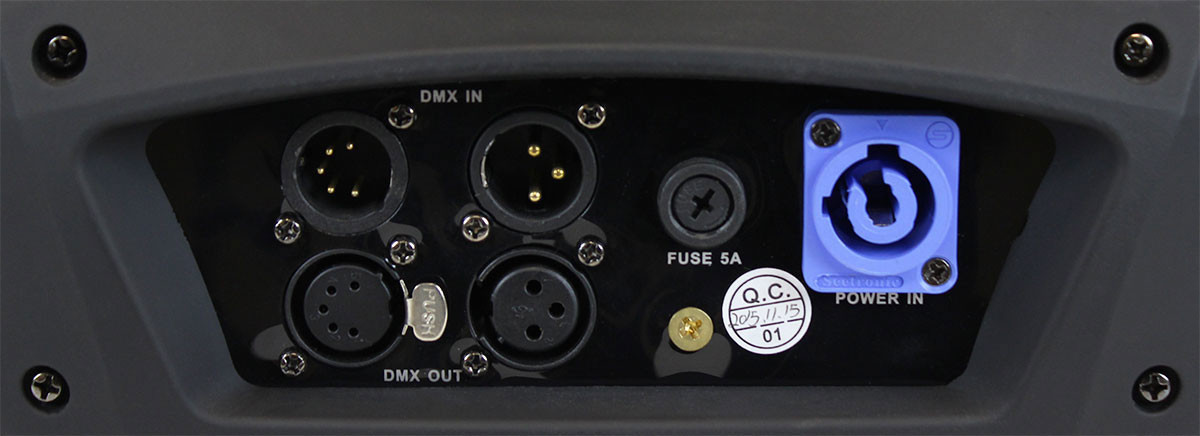 They also come equipped with an industry standard PowerCON compatible power Input, 3-pin and 5-pin DMX In/Out jacks, and dual quarter-turn "Omega" quick connect type clamp brackets for secure mounting.